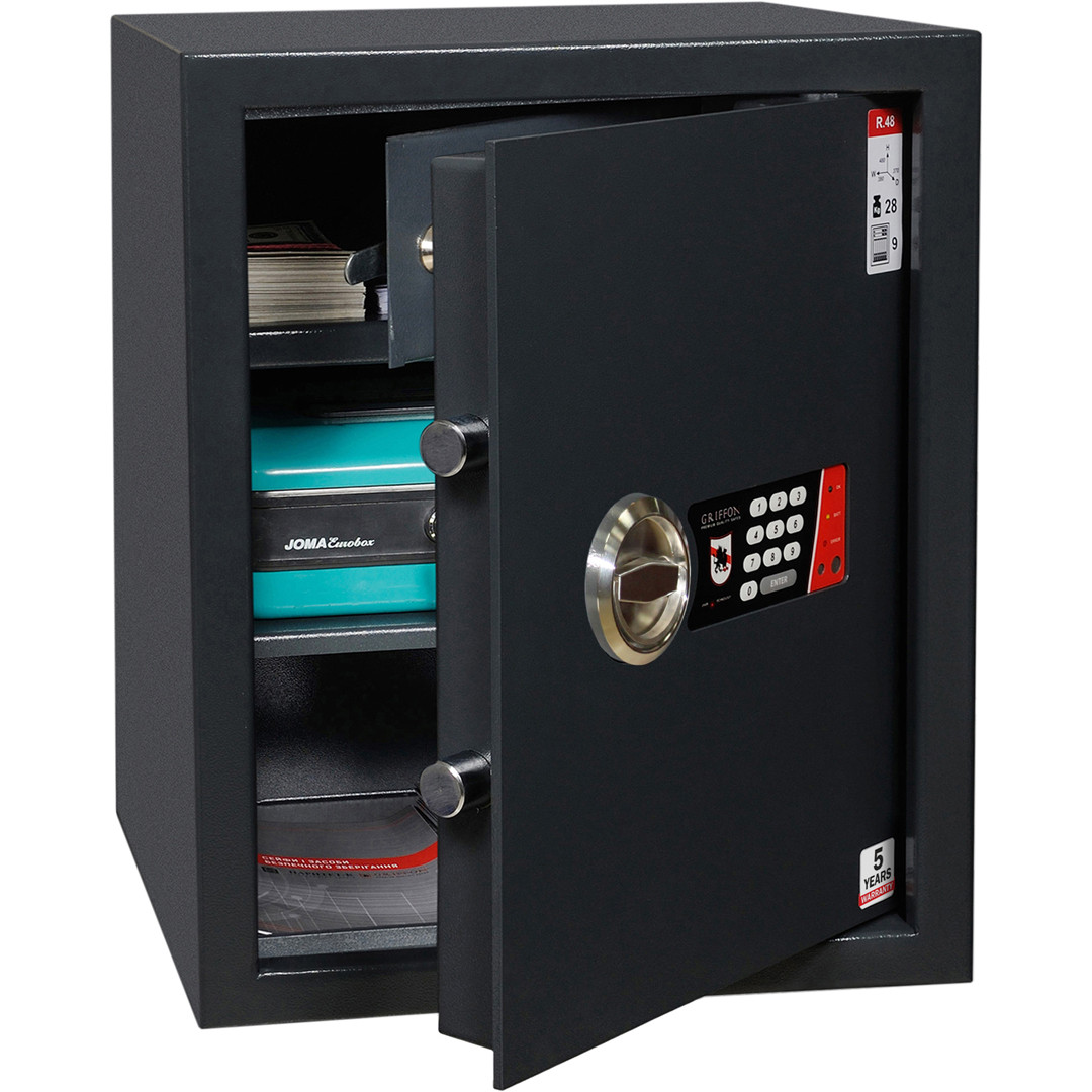 Меблевий сейф GRIFFON R.48.E використовується для зберігання грошей, особистої зброї, документів та цінностей. Сейфи серії R (Robbery) торгової марки GRIFFON від виробника «Паритет-К» мають антизламну конструкцію.