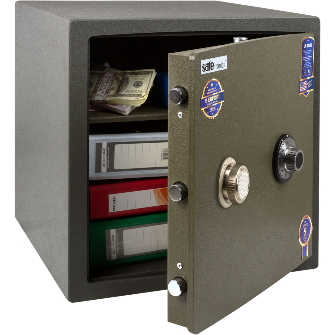 - Сейф комплектується сертифікованим механічним кодовим замком.